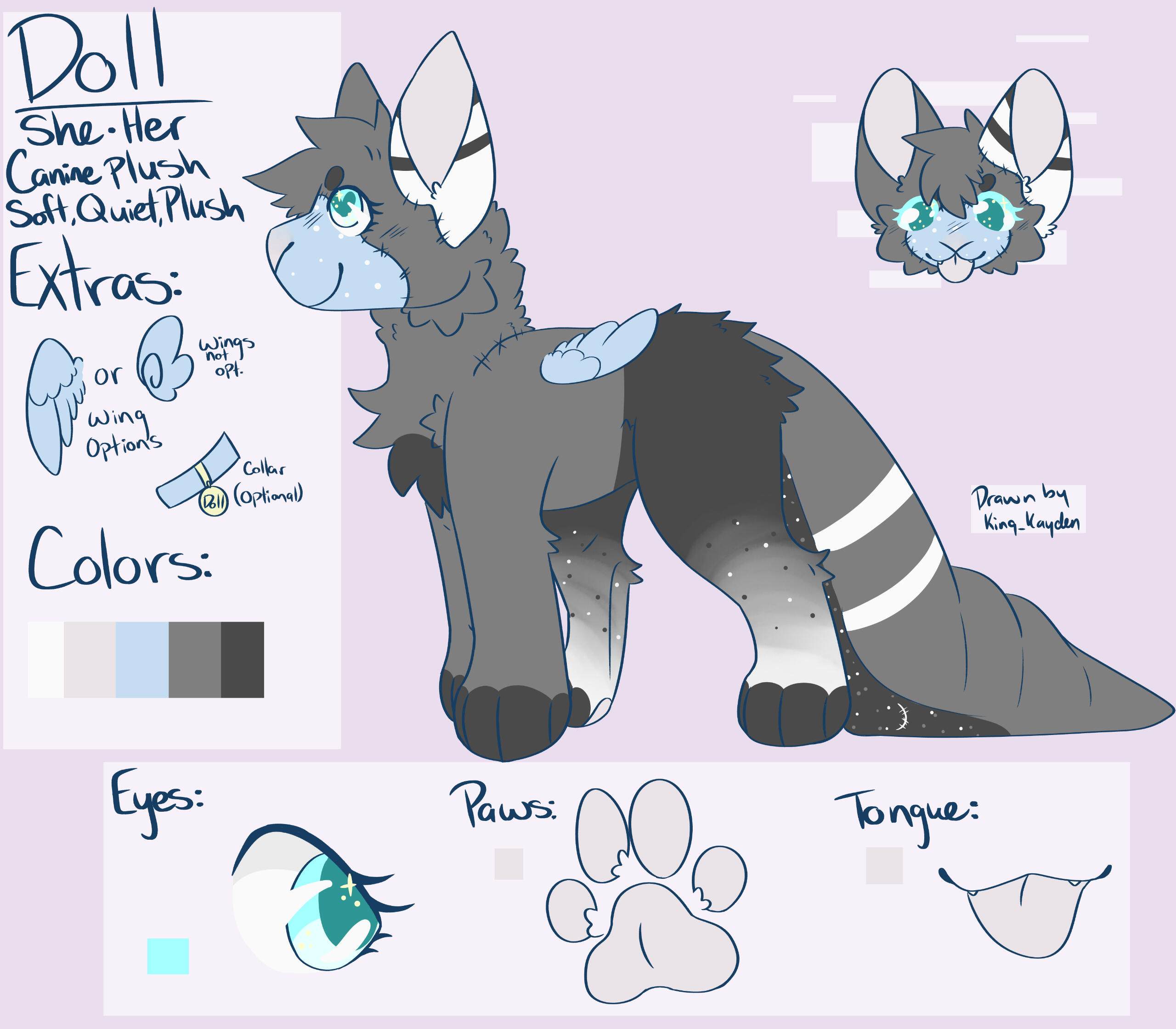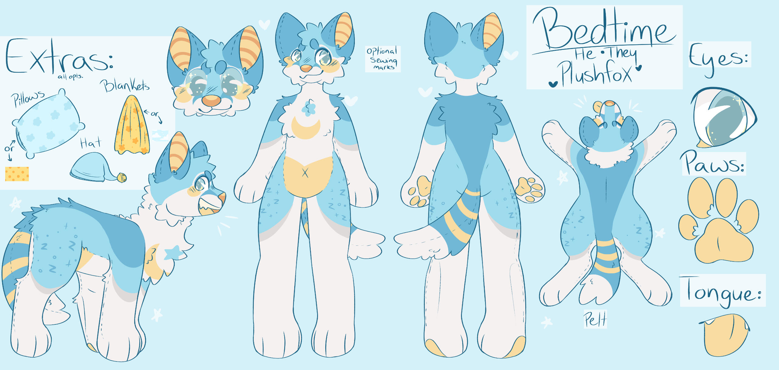 All reference sheets come with; eye, mouth and paw shot, a fullbody view, 1 headshot, Important information and a color template